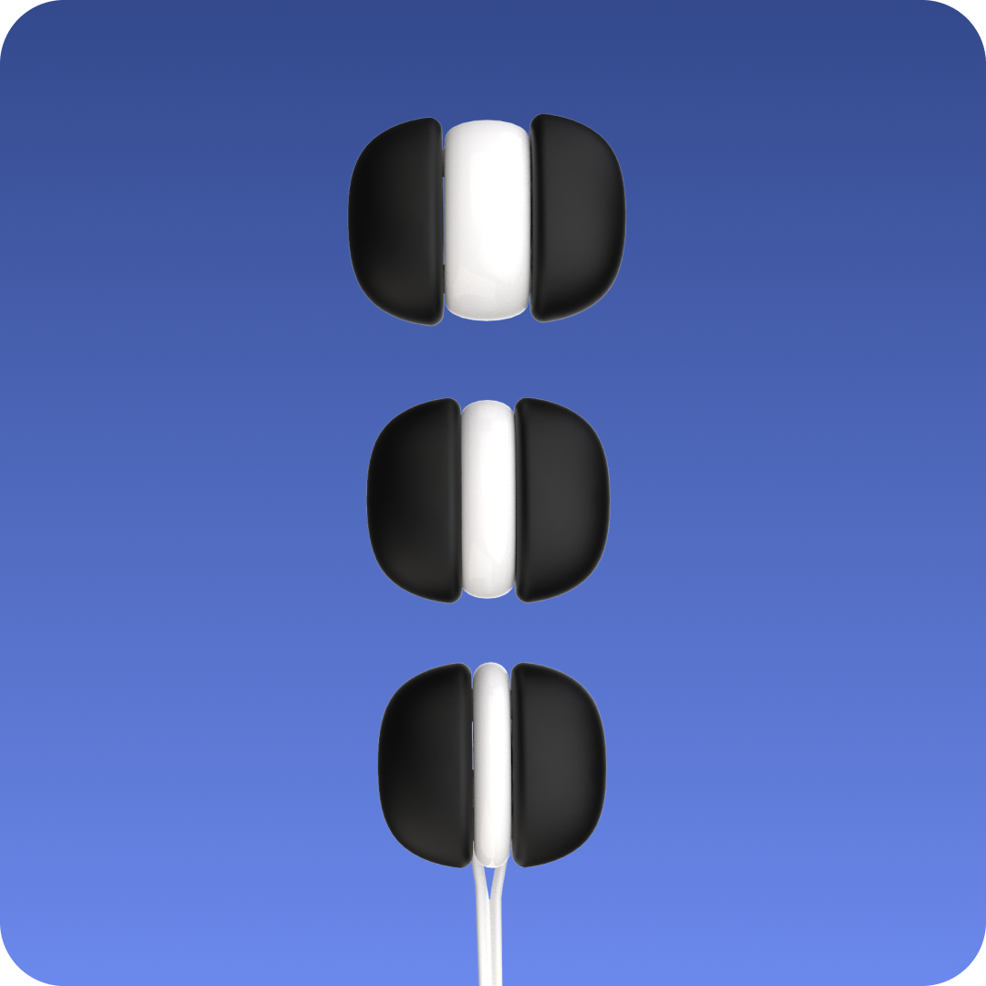 Vagustim earsets, available in three sizes (small, medium, and large), gently contact the ear, ensuring a comfortable fit and effective sessions.