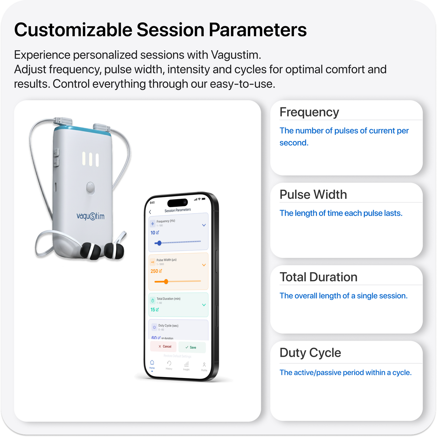 Vagustim offers fully adjustabl parameters, allowing you to customize sessions to suit your specific needs.