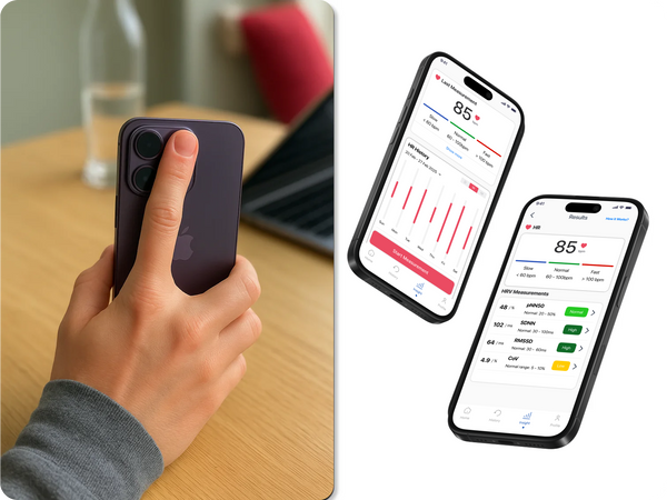 The Vagustim App features built-in stress level tracking via your smartphone camera—no wearables required. By simply placing your finger over the lens, you can gain valuable insights into relaxation, recovery, and overall well-being.
