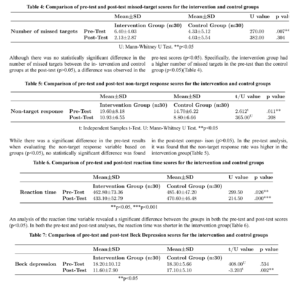 years) identified as being at high risk for attention deficit hyperactivity disorder (ADHD). Participants were randomly assigned to either the intervention or control groups. Each group consisted of 30 individuals. The intervention group received taVNS in conjunction with mobile-assisted games and relaxation exercises, while the control group received mobile-assisted games and relaxation exercises alone. The data were collected using a descriptive information form, the Beck Depression Inventory, and mobile-assisted assessment parameters. Data were analyzed using the Wilcoxon signed-rank test, t-test, and MannWhitney U test. Results: Significant differences were observed in the intervention group concerning the sub-parameters used to measure attention and depression scale scores; however, in the control group, all but one of the attention sub-parameters showed significant differences. A comparison between the two groups revealed significant differences in reaction times and Beck Depression Inventory scores in favor of the intervention group.
