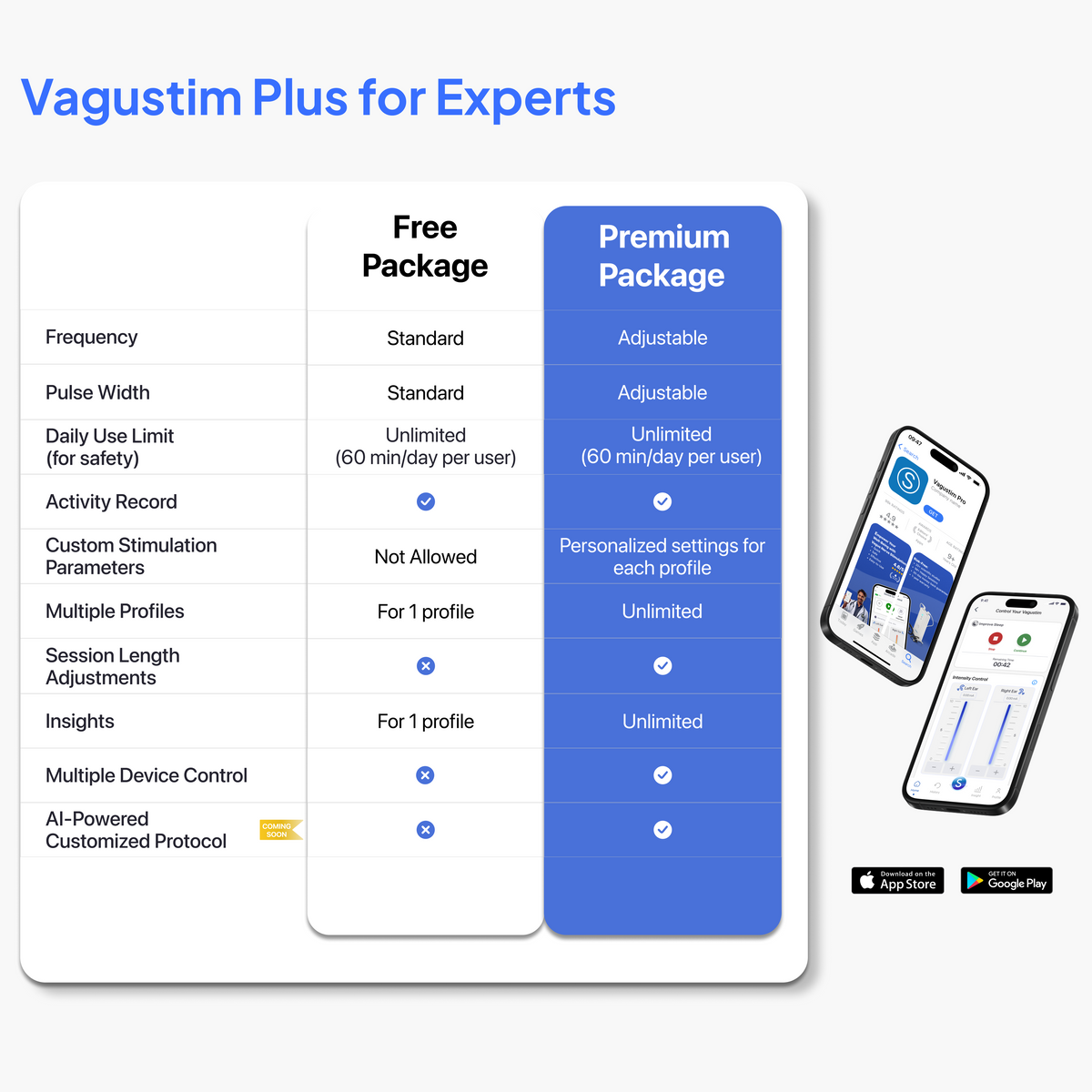 - Vagustim Plus is designed specifically for experts offering a comprehensive suite of advanced features. With customizable protocols and data-driven insights, Vagustim Plus enables precise, efficient, and scalable solutions. Whether managing multiple users or tailoring individual sessions, this platform simplifies complex workflows while ensuring optimal outcomes. Unlock the potential of vagus activation with a tool crafted to meet the highest standards.