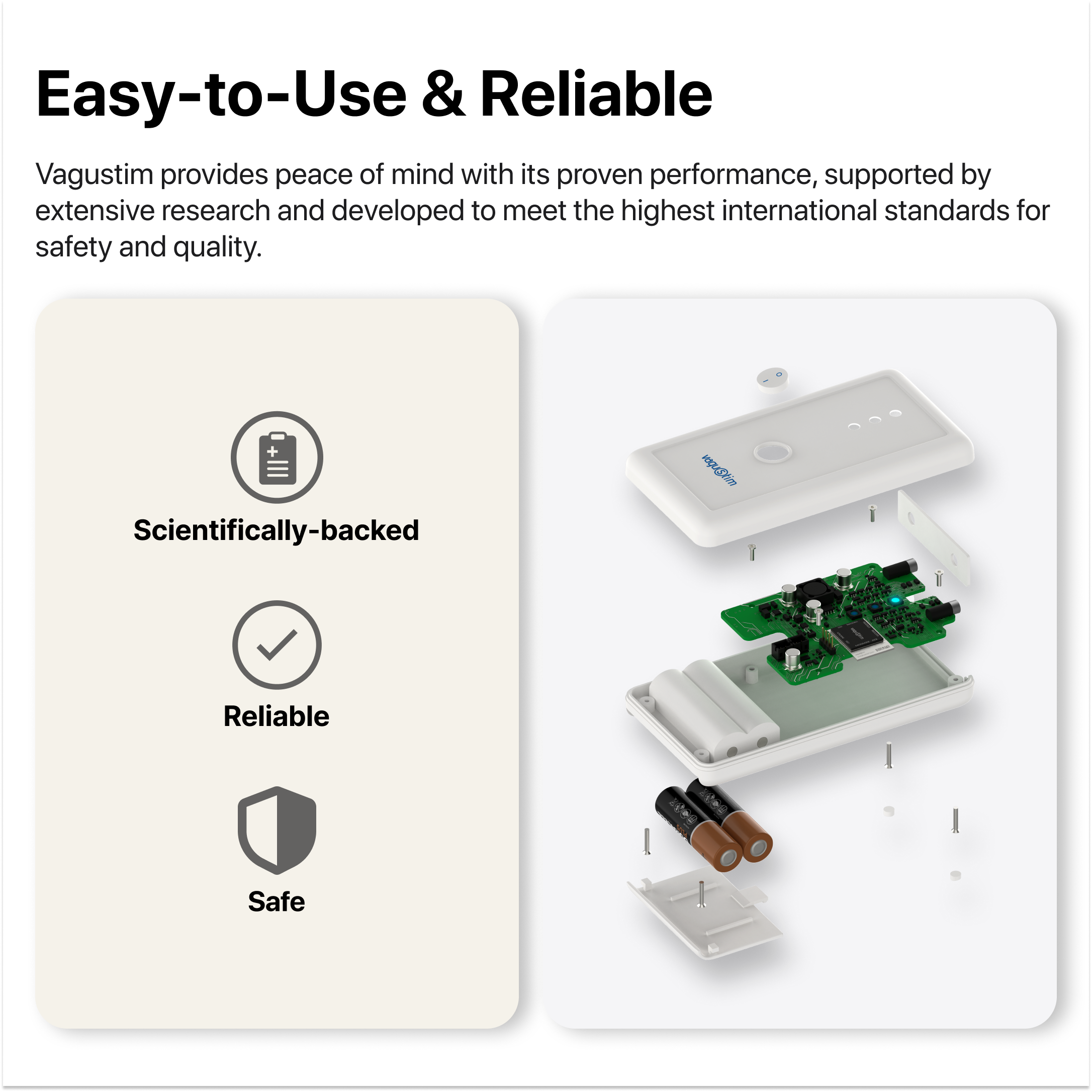 Vagustim is developed ensuring top-tier safety and quality. Backed by over 30 clinical trials, it combines scientific validation with precision engineering to deliver reliable results.