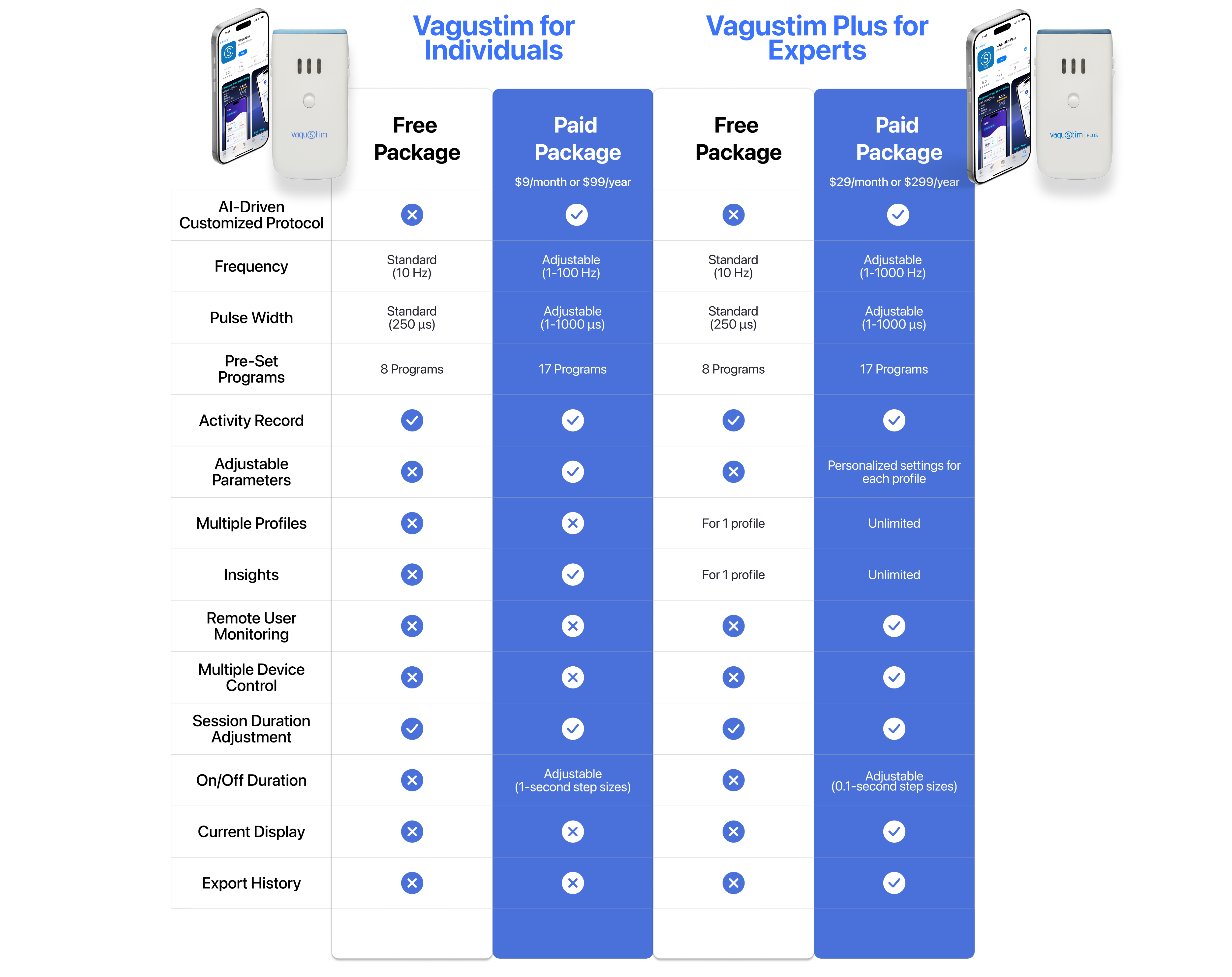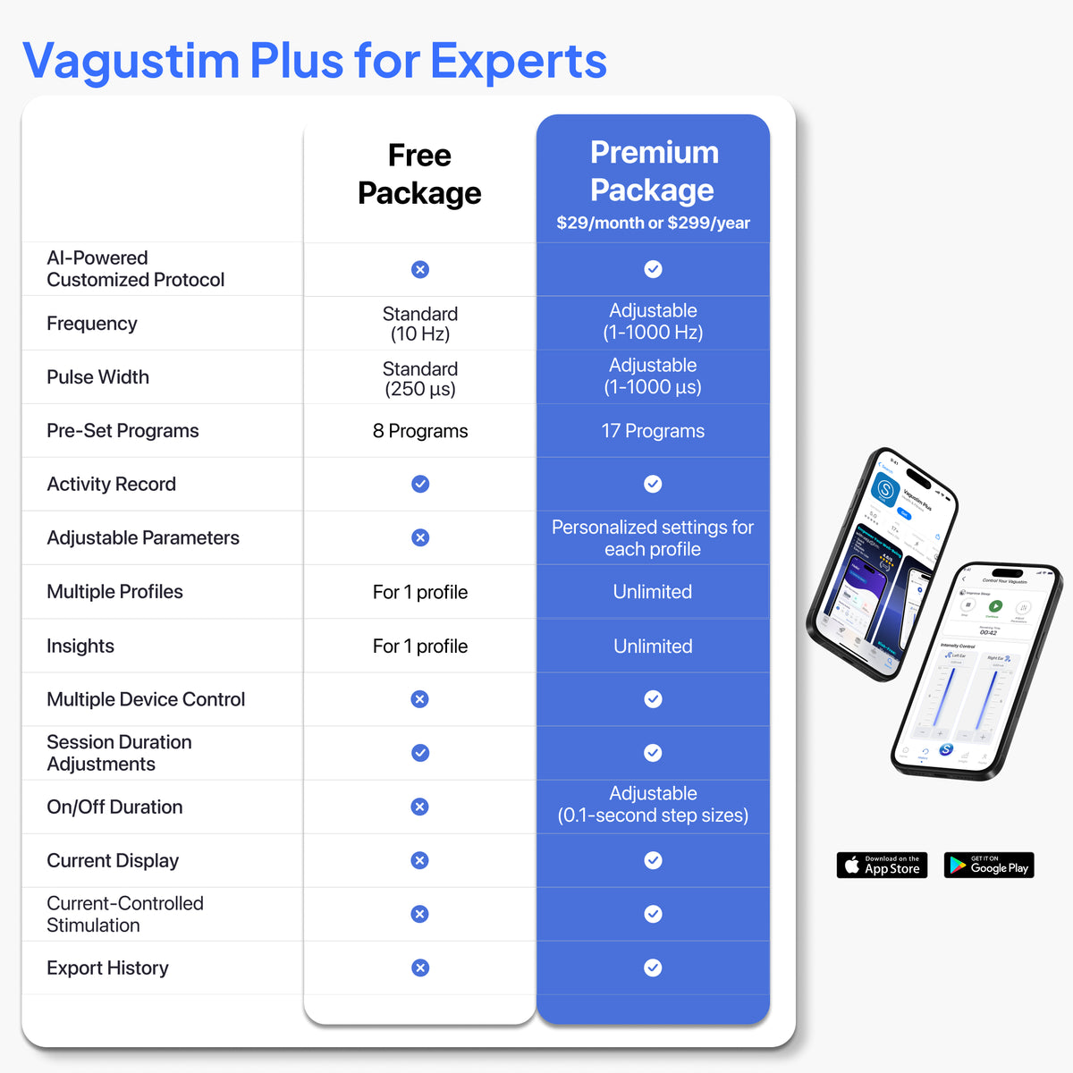 The premium subscription provides advanced functionality to maximize Vagustim’s potential, especially for experts or multi-user environments.